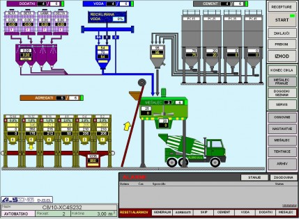 Program BETPRO je namenjen za avtomatsko upravljanje betonarn. Deluje na operacijskem sistemu Windows,odlikujeta ga velika preglednost in enostavna uporaba. Ob vklopu računalnika se na ekranu pokaže shematski prikaz betonarne,na kateri operater spremlja vse podatke o mešalnem ciklusu,izbrani recepturi,težah posameznih komponent,času mešanja,številu izvedenih ciklusov in alarmov. Vnos receptur in nastavljanje parametrov se izvaja v posebnih ekranskih slikah,ki se prikličejo na ekran s klikom miške na ustrezno polje.